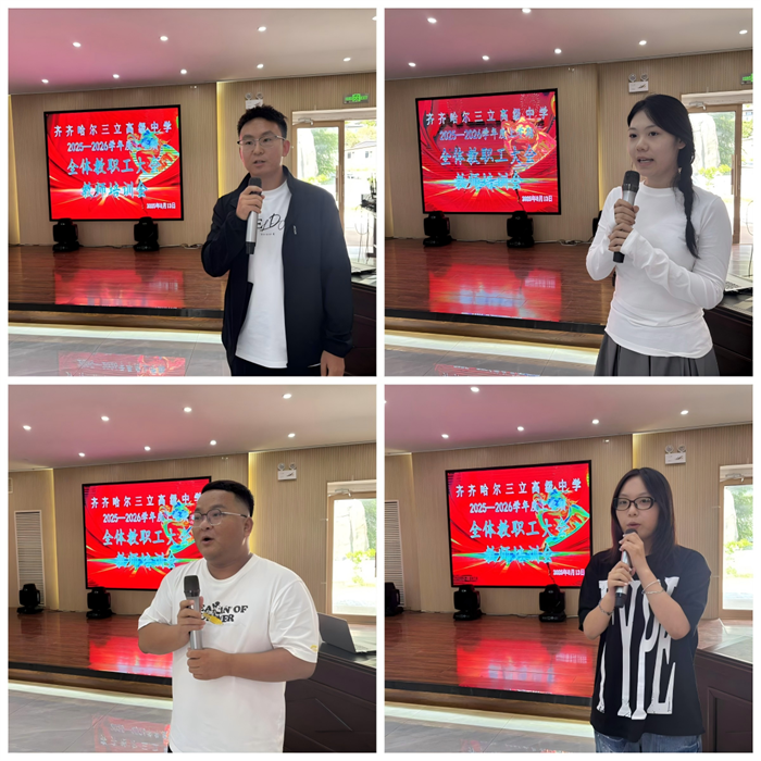 大会伊始,4位新入职教师依次亮相。中共党员赵阔(思想政治学科)、孙雪(语文学科)、王利强(9年高中生物教学经验)、董瑞(地理学科)分别介绍个人背景与职业规划,表达了融入学校大家庭、提升业务能力的积极意愿,他们的加入为学校教师队伍注入了新活力。